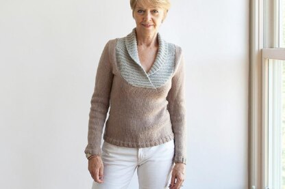 Introducing Marie with her luxurious and versatile alpaca shawl collar! Wear it cozily upright, folded over in a deep v-neckline, or somewhere in-between. Worsted wool is paired with alpaca dk in this slim-fitting and shapely piece. Her bodice extends high-hip in length with ribbed trimming at the hems and collar. Worked bottom-up, the lower portion begins as one piece on circular needles until the start of the front neckline where it splits and each side is worked separately. A fun project – wearing Marie you’ll welcome the chilly weather. Can’t wait! REQUIRED TECHNIQUES: knit, purl, circular knitting, k2tog, ssk, p2tog, p2tog tbl, m1r and m1l, stitch pick up around neckline, short row shaping at collar and shoulders, blocking, and seaming.