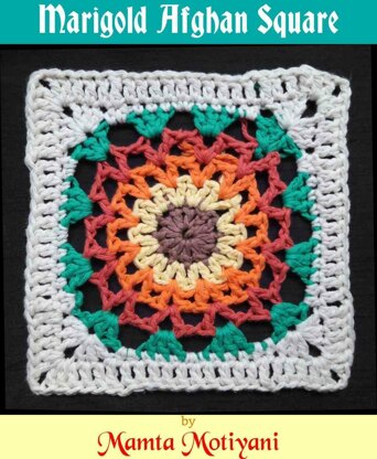 Marigold Afghan Square is an easy crochet pattern. It uses simple crochet stitches and is a very quick project. I love designing Mandalas. When I was designing this Mandala, I had a particular inclination to use these yarn colors. The pattern that formed on its own looked like a Marigold flower. So I named this pattern, “Marigold Afghan Square”. You can use it as a coaster or as an applique. It can even be used for making an afghan, a lapghan, a blanket, etc.