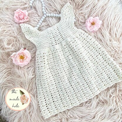 The Marion Dress is a stunning, timeless crochet dress. The lace detailing is so romantic. When designing this dress I had a beautiful wedding in my head and the flower girls were wearing this dress. It would also be a gorgeous Christening/Baptismal crochet gown if you make the skirt extra long. The dress is made from the top down in a raglan style. Though the stitches are very simple (only single crochet, half double, double and chains), this design is better suited for an intermediate crocheter. The shell lace is created with two rows of stitches that repeat. You may also want to make the matching Marion Bonnet!