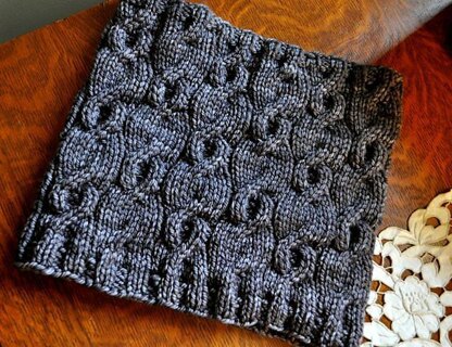 The bark pattern of the Mariposa Pine was inspiration for this cowl, knitted during a trip to Yosemite National Park.