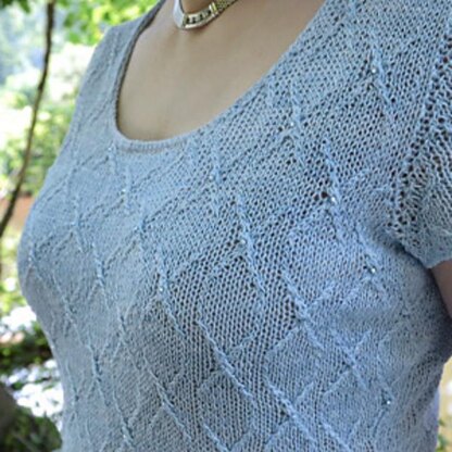 The tech edited and test knit pattern is fully written with a schematic. The pattern repeat is both written and charted. Construction: top down with side seams. The optional set in sleeves are top down as well.