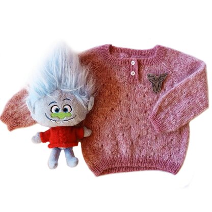 Lite and warm kids pullover with front placket and soft felt pin.
