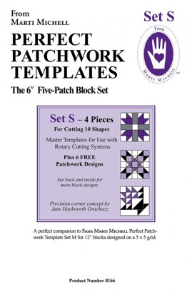 Many quilters have asked for templates to make 6-inch block on a 5 x 5 grid. The result was Perfect Patchwork Template Set S. Most of the 5-patch blocks you can make in Volume 4 with Set M templates you can also make at 6 inches (finished) with Set S templates. The instruction booklet that comes with Set S includes those conversions and several new blocks, including some not found in the Farmer's Wife book, which has helped popularize the 6-inch block size.