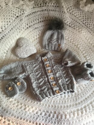 My Irish roots have inspired my love of knitting and I have introduced a modern twist to my creations. The pattern for a Hat and Jacket and has instructions to fit 16″, 18″, 20″ and 22″ chest and the end product is larger as it is a jacket. By extending the length of the arms and body on the largest size, it would easily fit a 3/4 year old.