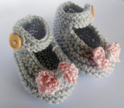 The Mary Janes are worked on a pair of size 3 (3.25 mm) needles.