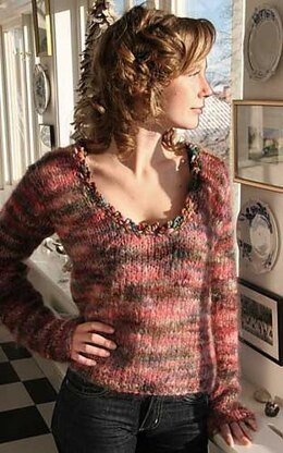 The crochet edge on this scoop neck airy pullover adds a defining touch to the silhouette.