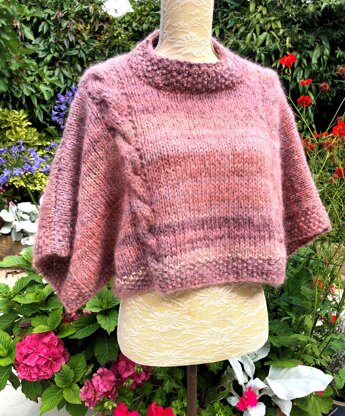 A gorgeous lightweight cropped top with wide fit and big sleeves for style and comfort. Great for layering during colder months or for Spring/Summer evenings when you want that extra bit of warmth as the sun goes down. Worked mostly in stocking stitch with just 2 giant cables on the back and front. It's edged in moss stitch making this ideal for a quick, versatile knit.