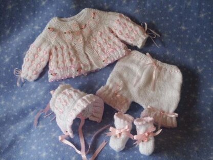 Matinee Coat, Bonnet and Booties size Prem/Newborn Ref18