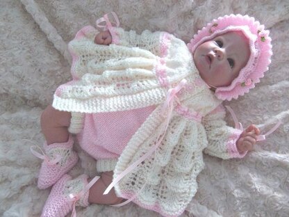 This pretty pattern gives full instructions for this matinee set.