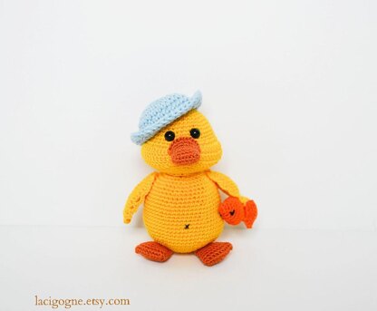 Max the cute duck amigurumi crochet toy is waiting so much for summer. He puts on his summer outfit, his favorite panama and hgoes swimming and fishing! Amigurumi duck is 8 cm/3.1in without a hat. Crochet duckling is made from Italian natural 100 % cotton yarn, stuffed with polyester. It is a perfect gift for a birthday, for a baby shower, Easter or Christmas.