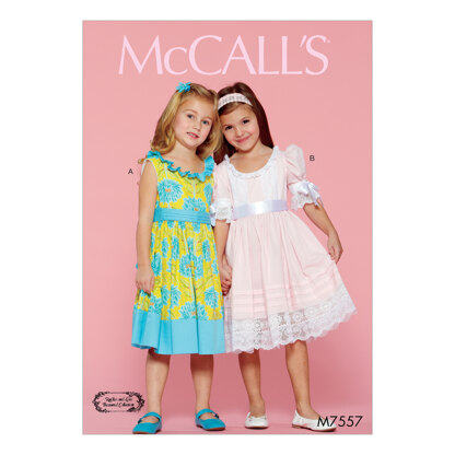 McCall's Children's/Girls' Ruffle-Neck Dresses with Bands and Ties M7557 - Sewing Pattern