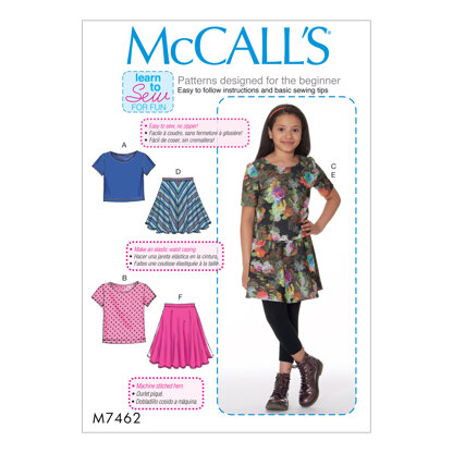 McCall's Girls'/Girls' Plus Knit Tops and Flared Skirts M7462 - Sewing Pattern is a Sewing pattern by McCall's, available as a Paper Pattern and includes instructions in English, Spanish. Super fun to make, this pattern could be your next masterpiece!