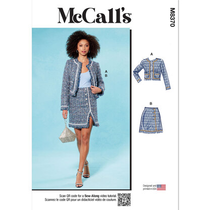 McCall's Misses' Jacket and Skirt M8370 - Sewing Pattern is a Intermediate Sewing pattern by McCall's, available as a Paper Pattern and includes instructions in English, French. Super fun to make, this pattern could be your next masterpiece!