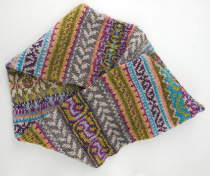 This is a pattern for a cowl worked in the round and using the stranded knitting technique.