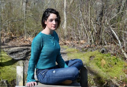 A large cable accents the neck (medallion) and a smaller one adorns the sleeve in this simple, fitted pullover with modified boatneck. This is the perfect project to showcase that special, hand-dyed yarn.