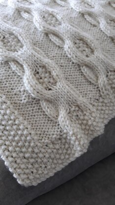 Knitted in a soft aran blend, this cable and moss stitch blanket is a more robust pattern suited to little boys, but equally as good for little girls.