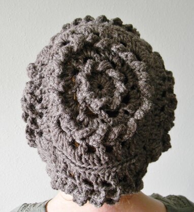 Skill level: intermediate to advanced. Finished dimensions: one size fits most. Head circumference about 21-22 inches. Yarn: worsted weight yarn - about 3.5 oz Hook: size 8H (5mm) and size 4E (3.5mm) or size to obtain gauge. Other materials: tapestry needle. Gauge: Rounds 1-2 = 2 1/2" To save time , please check your gauge.