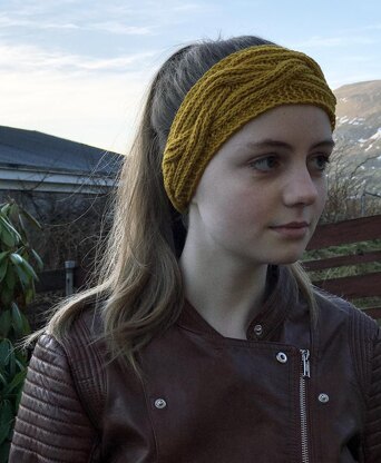 Finished size 50 cm/20 inches in circumference and 10 cm/4 inches in height. You can adjust height by casting on a few extra edge stitches on each side of the headband to make it wider.