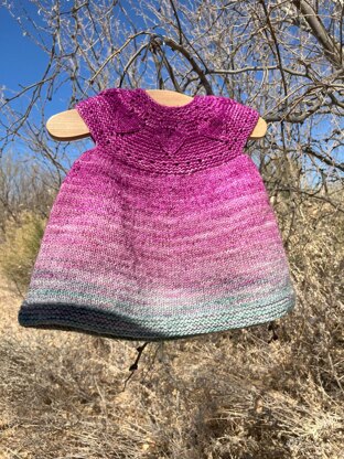 Top down design with a pretty lace pattern on the yoke and skirt.