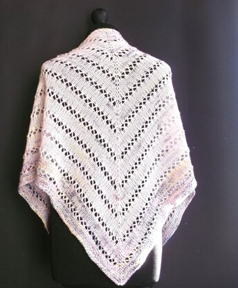 Sometimes all you need is a pretty yarn and a simple pattern. This easy shawl design, holding two strands of yarn together and working in mainly stocking stitch, would suit a confident beginner plus.