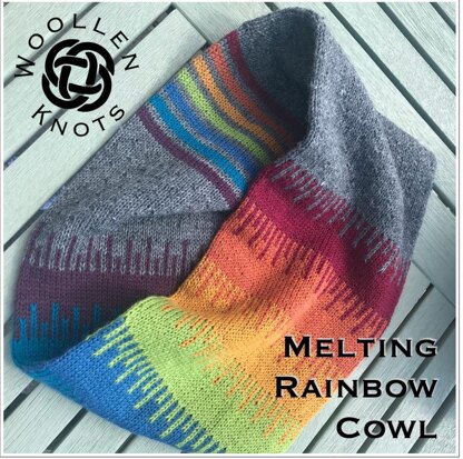Inspired by the Melting Rainbow and Stormy Days socks, this cowl is perfect to keep out the cold and brighten those dreary days.