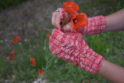 These fingerless mittens are easy to knit with a cable part on the top of the hand.