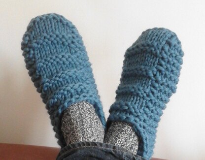 Knitting pattern for chunky men's slippers. Suitable for an intermediate knitter and length is adjustable.