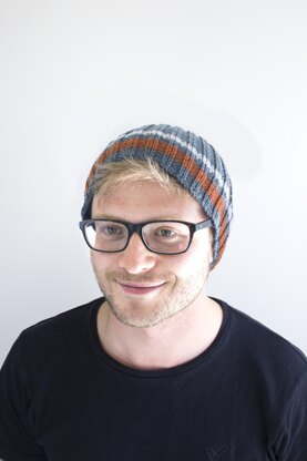 Easy to knit on 2 straight needles and a great stash buster as the traditional beanie takes 1 ball of DK yarn with a small amount of 2 contrast colours.