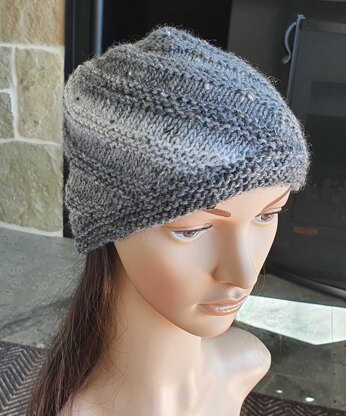 This family spiral Beanie is worked sideways, then stitches are picked up to form both the crown and lower band. The tonal Champetre yarn adds interesting colour variations to the knitting.