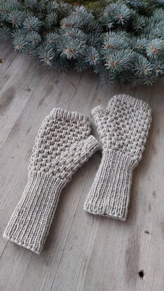 The Meri Mittens are fingerless mittens worked seamlessly from the cuff to the fingers. They can be worked either on double-pointed needles or on a long circular needle using the Magic Loop technique.