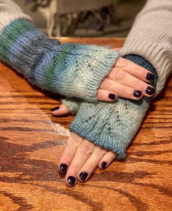I made these to keep my hands warm while playing outside with my dogs. I find when I'm throwing the ball or otherwise romping through the woods with these guys, I always end up needing my bare fingers. Why "Mermaid Mitts?" The first time I made them, I used a rainbow "Chroma" yarn and my daughter said they look like Mermaid Tails. It's a great name!