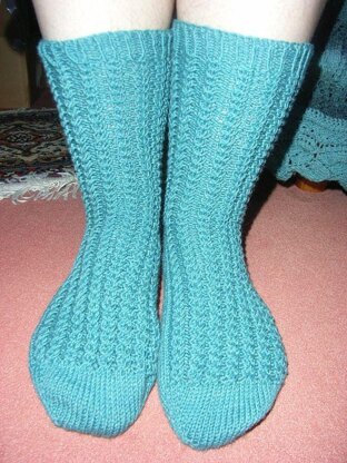 Made these cute Mermaid socks for my mother. They got their name because the little two needle cable looks like (fish) mermaid scale/mermaid fishtail and the colour also gives this impression.