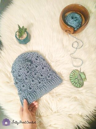 The open lace stitching feels as breezy to wear as it is to crochet and makes a surprisingly warm hat on cooler shores. Let your mermaid spirit shine through with this fun slouch hat!