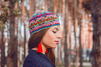 Crochet hat pattern “Merry carousel” includes: • Hook and yarn suggestions (original beanie was crochet with 100% cotton, Begonia Yarnart) • Crochet symbols in standard U. S. terms • Measurements • Explanation for particular stitches + video links to YouTube • Written pattern • Graph pattern