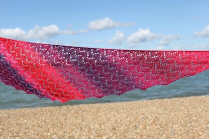 Merry Dancers is knit entirely on the bias from end to end, the directional shaping means that the pattern creates diagonal lines along the length of the shawl; to further enhance the diagonal lines use a multi-tonal or self striping yarn.