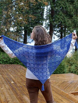 Worked from the point up, this easy-to-knit shawl features garter stitch grid lines checkered with mirrored openwork mesh squares and a sassy little tassel. Add a few beads to sparkle up this airy plaid or keep it plain. A terrific project for that one special skein hiding in your stash.