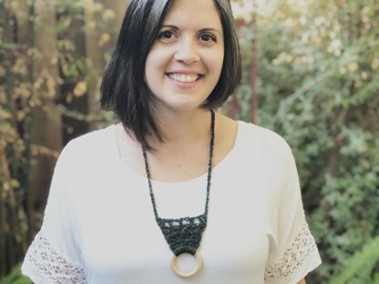 Crochet a stylish necklace with a wood ring at center. Perfect for moms of little ones or nursing moms who need to distract baby. Fast and easy crochet pattern that makes a lovely gift. This crochet necklace pattern is worked flat with only 20 yards of fabric. Not a nursing mom? You can substitute out the wood ring for any other decorative bauble, or just start with a row of single crochets.