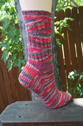 The socks are knit from the top down with the leg being worked in part back and forth.