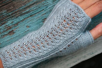 It’s time for a pair of fabulous finger-less mitts, don’t you think? These mitts are meant to be worked with a soft and luxurious yarn, cashmere anyone? Mica Mitts are worked in a twisted rib stitch with a beaded feather and fan center panel and a decorative thumb gusset.