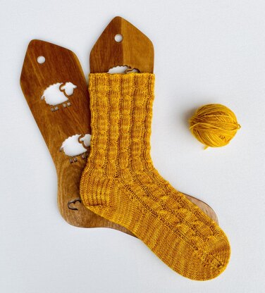 The cable pattern is easy to memorize and not too complicated. Written for 4 DPNs, but you may adapt to use your favorite method of knitting socks in the round.
