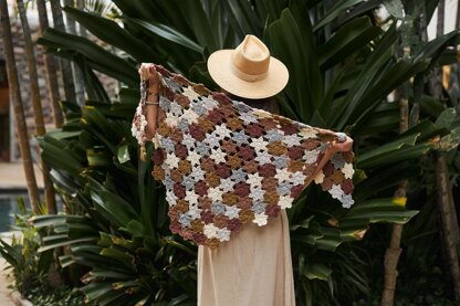 Cover yourself in 3-D blooms with the Midnight Jasmine Wrap! This romantic triangular shawl cascades over the shoulders, showering your ensemble with a garden of crochet flowers. Flowers are connected in a modular, join-as-you-go method to prevent the need for seaming.