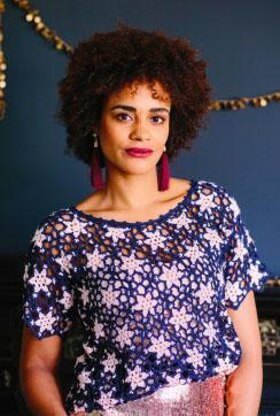 Inspired by the geometry of snowflakes, and worked in a luxurious silk and merino mix, this beautiful top is perfect for an elegant mid-winter celebration.