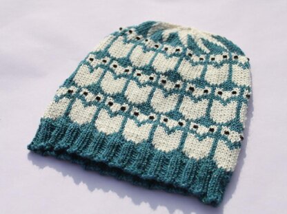 There is something absolutely amazing about spotting a snowy white owl in the middle of the night; this rare sight is the inspiration behind this hat, with their shining bead eyes these owls are ready for the midnight hour.