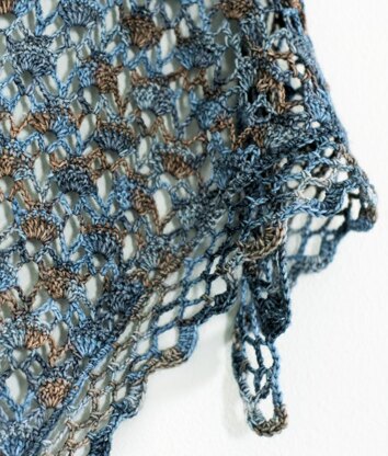 Wear this shawl to your next evening party. Midnight Soirée is a triangle shawl worked from the bottom point to the neck edge with a lacy shell design. Once the main body of the shawl is complete a chain edging is worked.