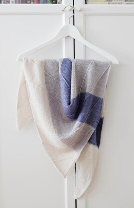 This simple and modern shawl combines color blocks with knit and purl sections that run diagonally across the shawl. The shawl is worked sideways from cast on tip to the bind off row, increasing stitches at the beginning of right side rows. Simple i-cord bind off adds a nice finishing touch.