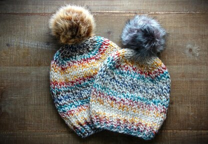 Some winter days in the Midwest require a little extra warmth. I designed this hat during a brutally cold sub-zero week just for that reason. Using super bulky weight yarn and larger needles, this simple hat pattern is perfect for beginning knitters - or a rather quick knit for more experienced ones. This hat uses only 45-50 yards of yarn. If you are snowed in, you could use leftover scrap yarn from other projects and make it extra fun and colorful. Gauge 10 sts/15 rows = 4” in stockinette stitch Yarn 45-50 yards super bulky weight yarn Shown in Lion Brand Wool-Ease Thick & Quick in Hudson Bay Materials Size US 11 (8mm) 16” circular or double pointed needles Size US 13 (9mm) 16” circular or double pointed needles Tapestry needle for weaving in ends Stitches to Know: Knit, Purl, SSK, K2tog Size Adult: 18 inch diameter 10 inch height Child: 16 inch diameter 8 inch height