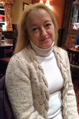 A cozy, open front cardigan, with a thick cable running along the sides and around the neck, will keep you warm against winter chills. This pattern is worked from the bottom up using short rows to shape the hemline. Mirrored cables are worked along front panels. Fronts and back are separated at the armholes and each worked separately. Shoulders are joined with 3 needle bind off. Front cables are extended past the shoulder, grafted together and sewn to the back neckline. Sleeves are knit in the round from the cuff to the sleeve cap. Sleeves are set in.