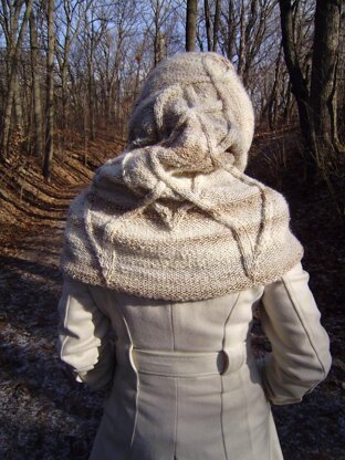 MidWinter Wanderer is a wonderfully versatile, wearable and chic cowl/hood. It can be easily paired with outerwear to keep the wind and snow at bay, as well as draped artfully around your shoulders as an indoor capelet/poncho accessory!