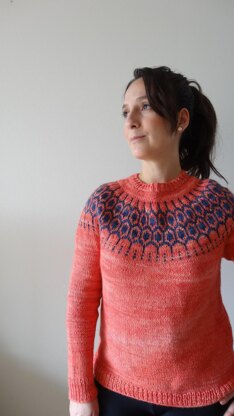 The Miel Sweater is a fun colorwork pattern, worked in the round from the top down. The slightly loose fit makes it a super comfortable piece to go with any outfit.