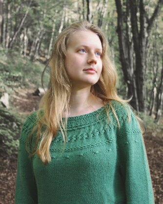 Milay Sweater is a top-down seamless yoke sweater. It has short rows at the back of the neck, and textured patterns around the yoke using a combination of knit, purl, slip and cable stitches. There is optional waist and hip shaping to add feminine shape, and the bottom hem is finished off with slip and seed stitches.